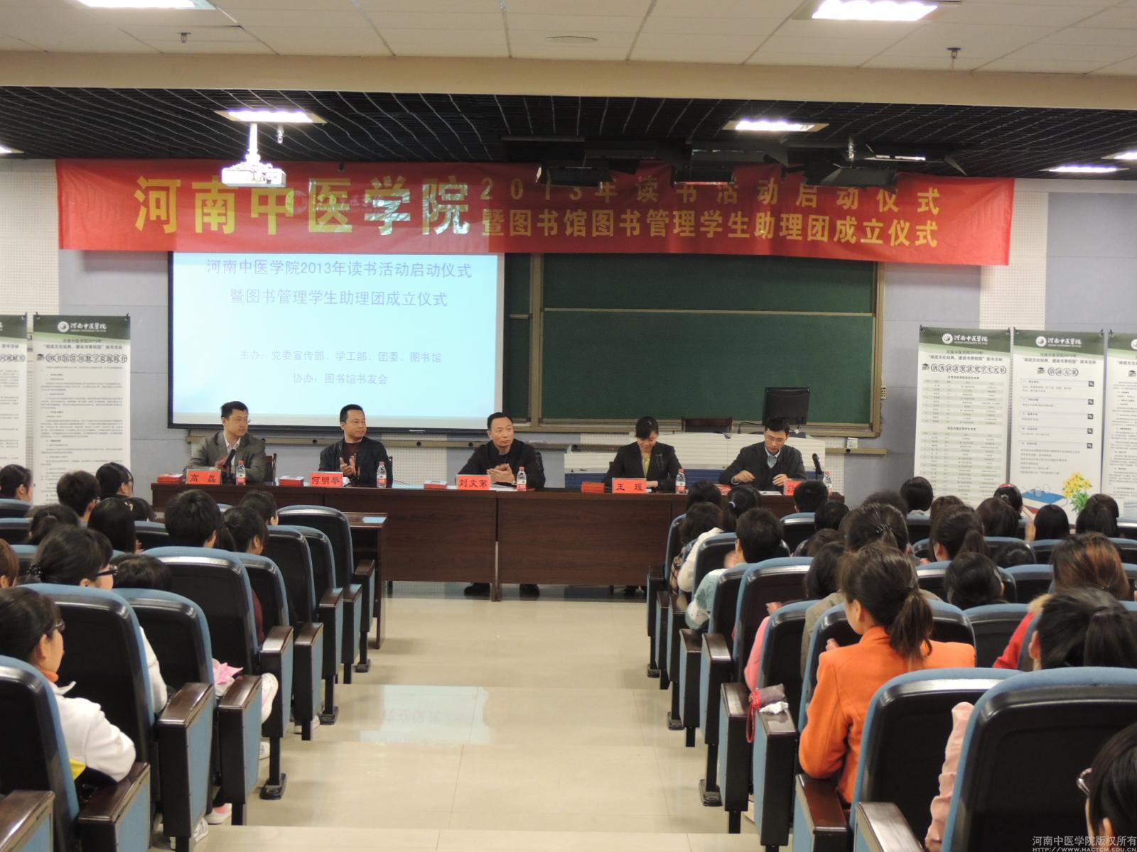2013年4月23日晚,在第十八个世界读书日,leyu·乐鱼(中国)体育官方网站举行了2013年读书活动启动暨图书馆图书管理学生助理团成立仪式。我院副院长刘文第及党委宣传部、学工部、校团委、图书馆等读书活动主办单位负责人出席了启动仪式。启动仪式由党委宣传部副部长王瑾主持,图书馆职工及在校生200余人参加了启动仪式。