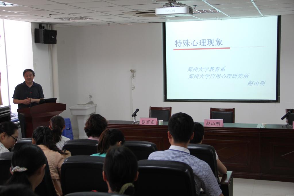 2015年5月21日下午,leyu·乐鱼(中国)体育官方网站第十届心理健康教育宣传月系列活动之一的心理健康教育讲座暨心理督导师聘任仪式在新校区教学楼BN617会议室举行。校党委副书记张丽霞、郑州大学教育系心理学教研室主任赵山明教授出席仪式,学工部全体成员、各二级学院主管学生工作负责人、辅导员、专兼职心理咨询教师、朋辈心理咨询员和心理学生干部代表参加并聆听了讲座。本次活动由学工部副部长、心理健康教育与咨询中心主任李俊芝主持。