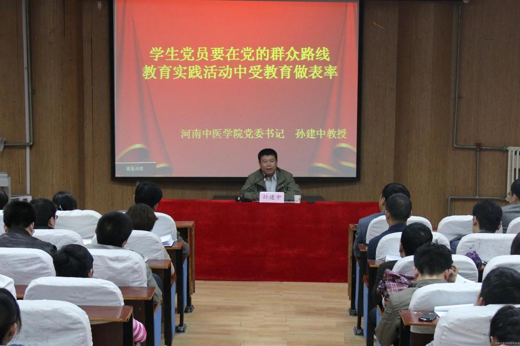 为了在学生党员中扎实开展党的群众路线教育实践活动,2014年4月11日下午,在教学楼二楼多功能厅,党委书记孙建中以《学生党员要在党的群众路线教育实践活动中受教育做表率》为题给学生党员上党课。学生党员代表、各院系主管学生工作的党委副书记、全体辅导员、学工部、招就处、校团委全体成员、组织部、党院办有关负责同志共360人参加。主管学生工作的副院长许二平与大家一起听取了孙书记的报告。