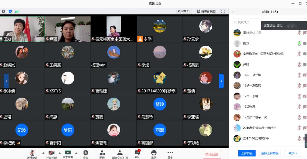 本网讯(图文/张文举)为庆祝中国共产党成立99周年,进一步在党员中牢固树立“不忘初心、牢记使命”的责任意识,2020年7月1日下午,护理学院通过腾讯会议开展“党课开讲啦”主题党日活动,活动特邀抗疫英雄朱海秀、杜鸽参加,校党委委员、副校长田力,护理学院全体师生党员126人参加了主题党日活动。此次活动也是护理学院党员讲堂的系列活动。