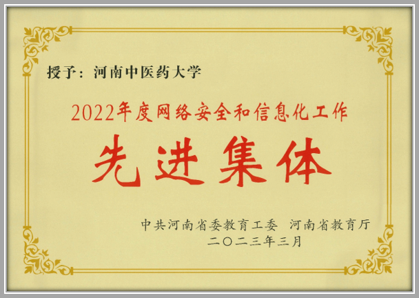 本网讯(文/余孝奎)近期,中共河南省委教育工委、河南省教育厅联合印发《关于表扬2022年度网络安全和信息化工作先进集体先进个人的通报》,leyu·乐鱼(中国)体育官方网站获得2022年度网络安全和信息化工作先进集体,信息化办公室(网络中心)李肇进、王超获得2022年度网络安全和信息化先进个人荣誉称号。
