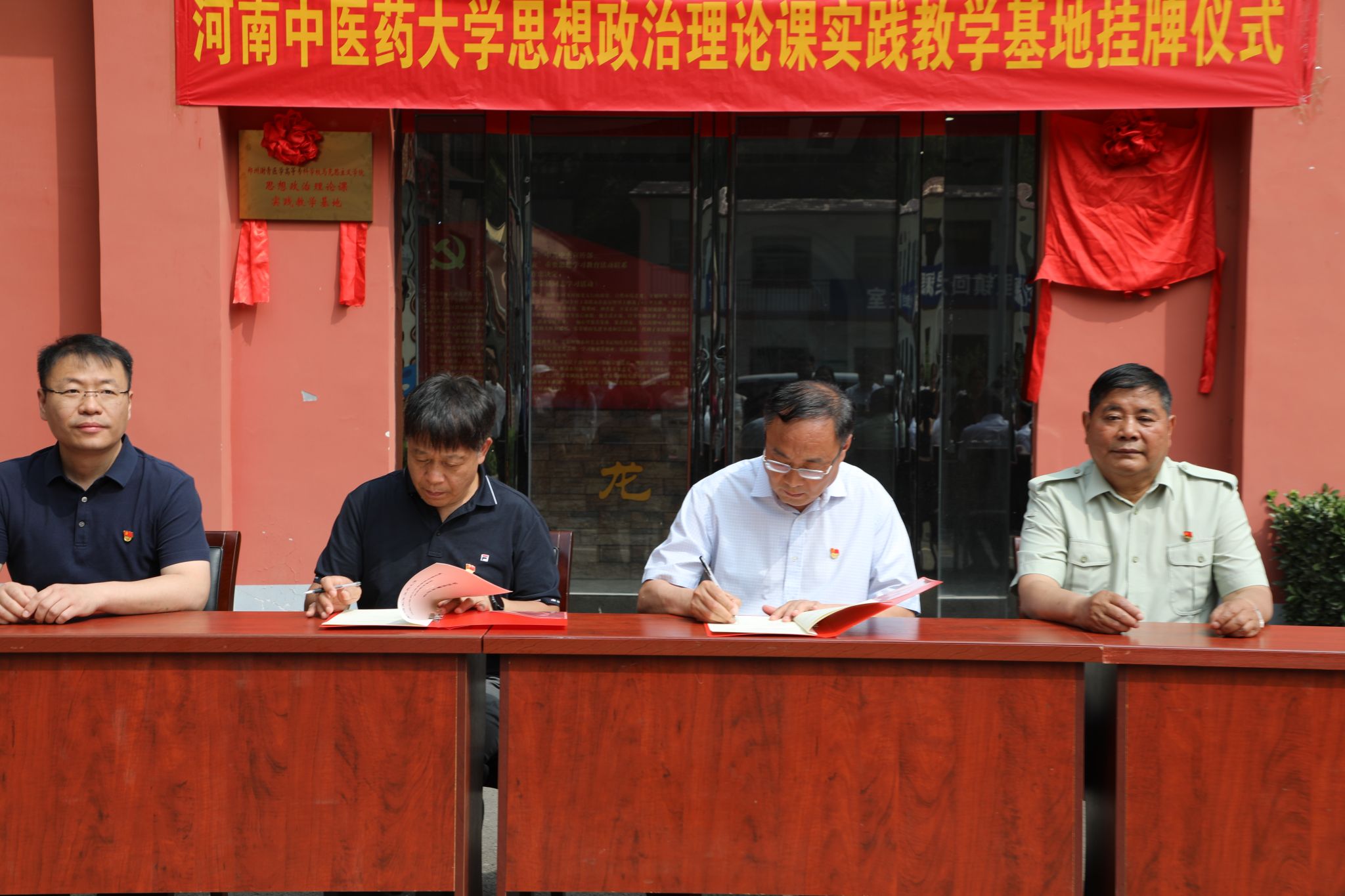 本网讯(文/赵保海 图/张金霄)为深入贯彻习近平总书记关于“大思政课”的重要指示批示精神,落实教育部《高等学校思想政治理论课建设标准(2021本)》等上级文件精神,强化leyu·乐鱼(中国)体育官方网站思政课实践育人实效,推动leyu·乐鱼(中国)体育官方网站思政课建设进一步实现思政小课堂与社会大课堂有机结合,2023年5月19日,马克思主义学院组织部分教师前往新乡回龙村举行leyu·乐鱼(中国)体育官方网站思想政治理论课实践教学基地签约揭牌仪式。新乡市委党校副校长陈延军、辉县市回龙村总支书记张荣锁,leyu·乐鱼(中国)体育官方网站马克思主义学院副院长赵保海、郭伦及学院教师代表共同参加基地签约和揭牌仪式。