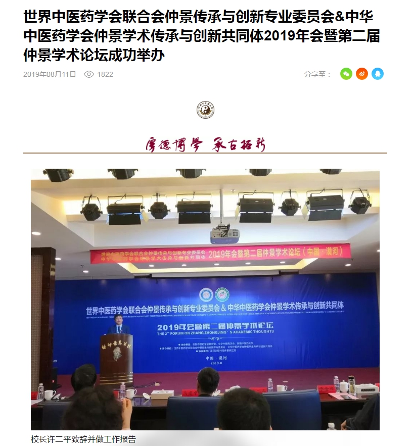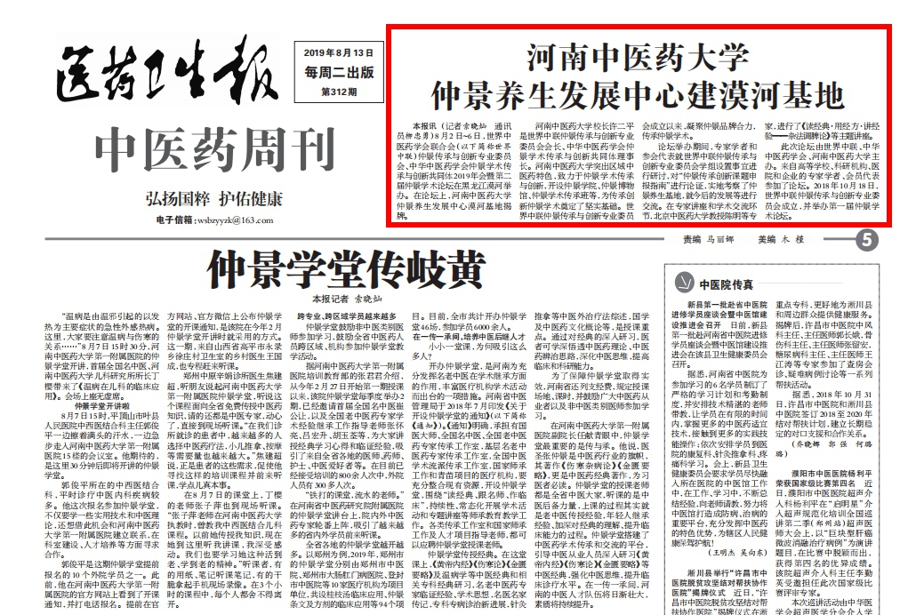 本网讯(文图/马志超)近日,世界中联仲景传承与创新专业委员会、中华中医药学会仲景学术传承与创新共同体2019年会暨第二届仲景学术论坛”在黑龙江漠河举办。在国家中医药管理局原副局长、世界中医药学会联合会主席马建中和中华中医药学会副会长曹正逵的见证下,校长许二平和仲景宛西制药股份有限公司创始人、党委书记孙耀志为“leyu·乐鱼(中国)体育官方网站仲景养生发展中心漠河基地”揭牌。论坛期间,大家还就专委会学组设置事宜进行了研讨,对“仲景传承创新课题申报指南”进行了论证,实地考察了仲景养生基地,并就今后的发展和关心的话题进行了深入的交流。