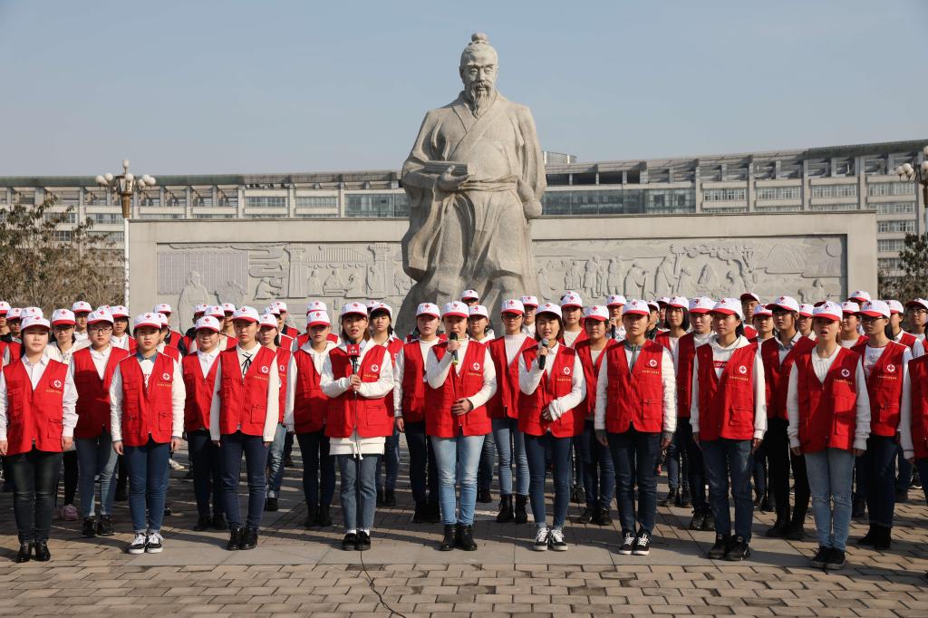 百名志愿者在医圣张仲景像前唱响《爱的奉献》