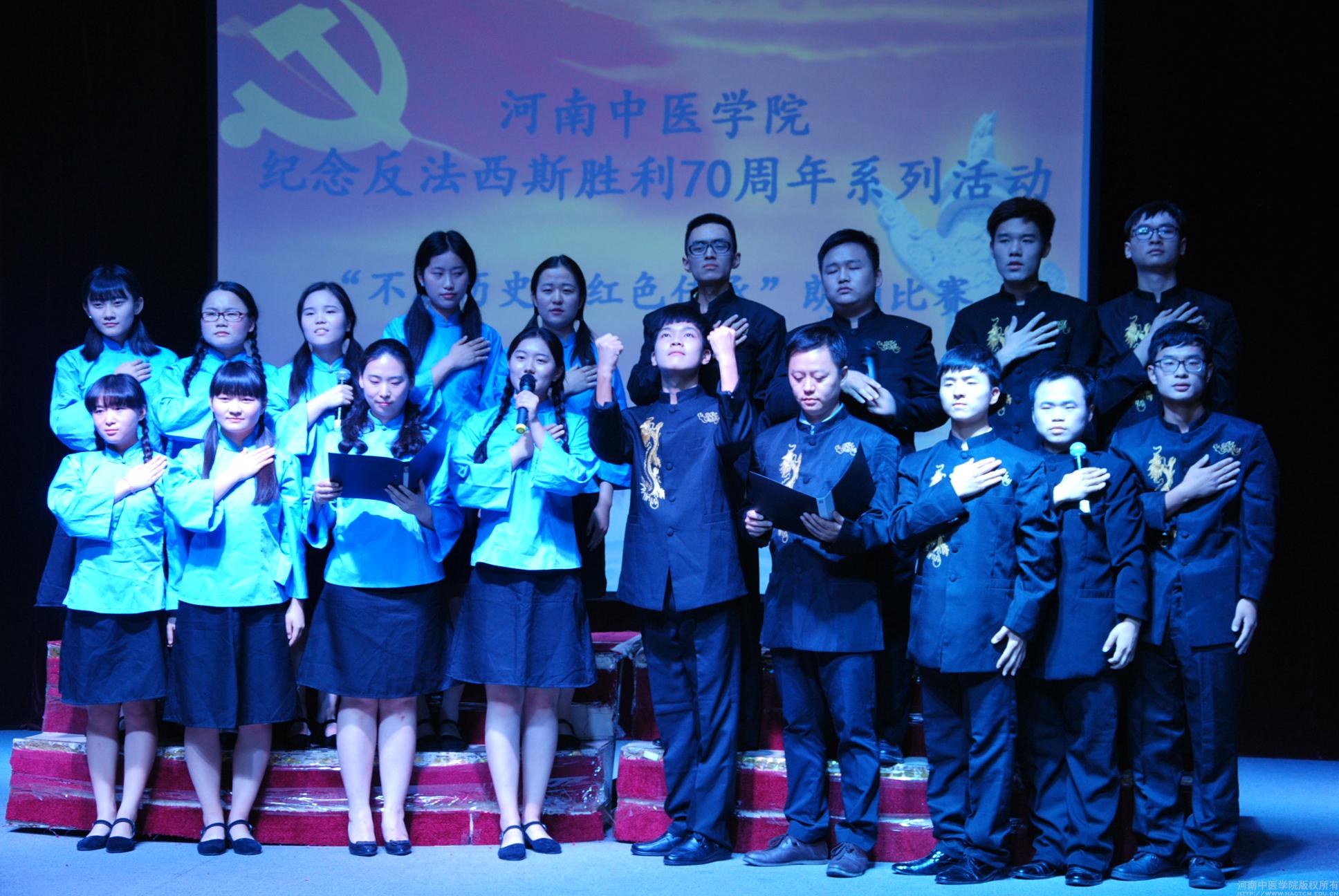 比赛在基础医学院教师杨联合的朗诵《壮志凌云---大刀砍向鬼子》中拉开了序幕,外语学院的《站在高山之上兮——念我中华》、一附院的《黄河之水天上来》、体育教研部的《民族的丰碑》、药学院的《祭黄帝陵》、机关工会的《撑起天地的民族脊梁》等诗朗诵,展现了抗战英雄保家卫国的英雄气概;图书馆报送的《卢沟桥的狮子,且听我吟》、信息技术学院报送的《勿忘国耻圆梦中华》重现了国破家亡的那段凄惨的历史,惊醒世人,勿忘国耻;后勤集团王蒙娓娓道来的《寻梦》,刻画出一位牺牲了的革命者对亲人的思念和愧疚;机关工会带来的《透过历史的眼眸》、网络信息中心带来的《安息吧,三千五百万英烈》,向那些牺牲在反法西斯岁月里的英烈们,致以最崇高的敬意!感谢他们抛头颅、洒热血将那段峥嵘岁月永远镌刻在中国人的心中,让我们在七十年后的今天依旧铭记;三附院的自创作品《继承先烈遗志,再创中国辉煌》讲述了leyu·乐鱼(中国)体育官方网站前任校长彭延泰的儿子、载入史册的民族英雄彭雪枫烈士英勇顽强抗击日寇、血洒疆场的壮举。比赛在二附院慷慨激昂的《民族魂》朗诵中划上了句号,那一声声穿透人心的呐喊赢得了观众雷鸣般的掌声。
