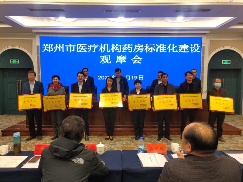 本网讯(文图/于红艳)近日,郑州市医疗机构药房标准化建设观摩会在中牟召开。会上为八家药房标准化建设示范单位举行授牌仪式,二附院成为首批郑州市医疗机构药房标准化建设示范单位。二附院药学部主任赵旭代表医院接受授牌。