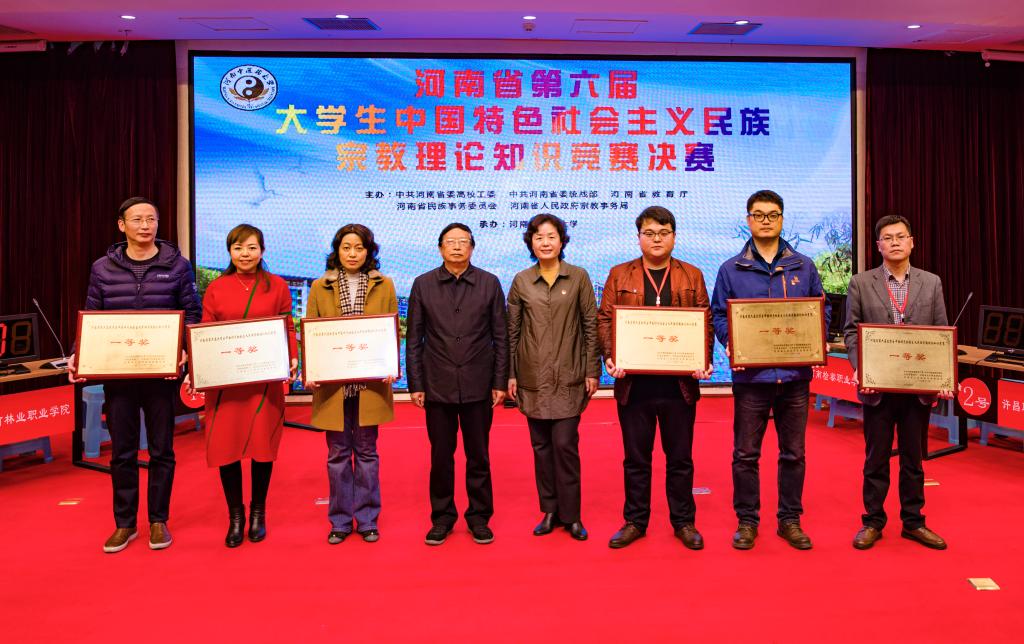 此次竞赛采用现场答题的方式,分必答题、抢答题和风险题三个环节,题目涵盖了马克思主义宗教观、党的宗教政策和国家宗教法律、法规等方面的相关知识。比赛现场,选手们积极抢答,沉着应答,团结协作,展现出丰富的知识积累、良好的心理素质和敏捷的思辨能力,为观众呈现了一场代表我省高校最高水平的赛事。在互动环节,场内观众积极参与,踊跃回答,现场气氛活跃,展现了leyu·乐鱼(中国)体育官方网站师生对民族宗教理论知识学习的成效及良好的精神风貌。经过激烈角逐,河南师范大学、leyu·乐鱼(中国)体育官方网站、河南城建学院、河南经贸职业学院、焦作师范高等专科学校、河南林业职业学院代表队荣获一等奖,郑州大学、许昌职业技术学院等12支队伍获得二等奖,新乡学院、驻马店幼儿师范高等专科学校等20支队伍获得三等奖。主办和承办单位领导为获奖代表队和获奖选手颁奖。