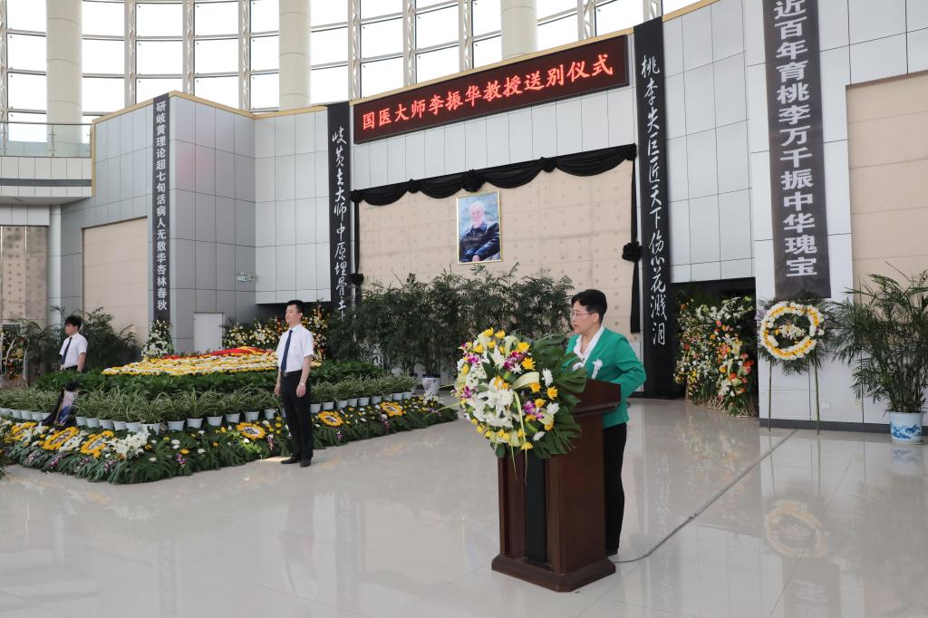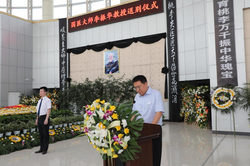 leyu·乐鱼(中国)体育官方网站党委书记别荣海主持送别仪式。校长许二平介绍李老生平。李老1924年11月出生于河南洛宁中医世家,自幼秉承家学,熟读经典,博学广记。早年悬壶济世,造福乡梓,后调入河南中医学院任教,先后担任内科教研室主任、附属医院副院长、医教部副主任、中医系主任、学院副院长、院长。李老献身祖国医学事业,从医从教70余年,擅长温热病、脾胃病及疑难杂症的诊治,治学严谨,造诣精深,大医精诚,德艺双馨,为医家楷模,令世人敬仰。李老以弘扬中医药文化、发展中医药事业为己任,成立了国医大师李振华传承工作室、河南中医学院李振华学术思想研究所和李振华基金会,为中医药事业的传承与发展做出了卓越的贡献。他先后荣获卫生部甲等模范教师奖、中国中医药学会“首届中医药传承特别贡献奖”。李老的一生是为人民健康事业无私奉献的一生,是为中医学术继承和发展奋斗的一生,他的逝世是leyu·乐鱼(中国)体育官方网站乃至全省、全国中医学界的重大损失。我们要化悲痛为力量,永远铭记李老的教诲,认真学习李老的好思想、好品德、好作风,勤奋学习,努力工作,为推进中医药事业又好又快发展而努力奋斗。