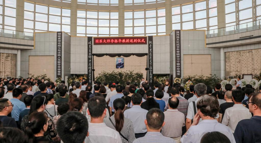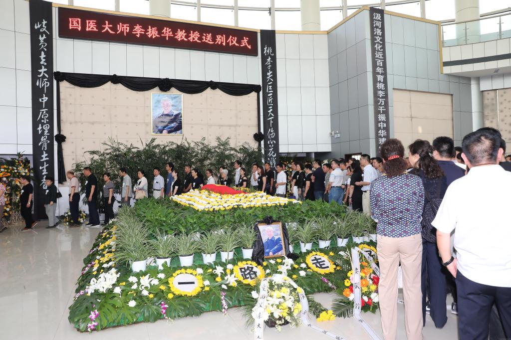 5月27日上午,李振华教授送别仪式在郑州市殡仪馆举行。河南省政协副主席龚立群、靳克文,省卫计委主任李广胜,省卫计委副主任、中医管理局局长张重刚,省中医管理局副局长韩新峰,省纪委原副书记董广峰,省发展改革委原主任冯树杰,省作家协会主席张宇,平煤集团总经理万善福,国土资源厅不动产管理局局长蔡辉,省工会原副主席马露霞,leyu·乐鱼(中国)体育官方网站党政领导、离退休校领导老教师、职能部门及院部负责人、同事,李振华教授生前好友、亲属、弟子及社会各界有关人士500余人参加了送别仪式。