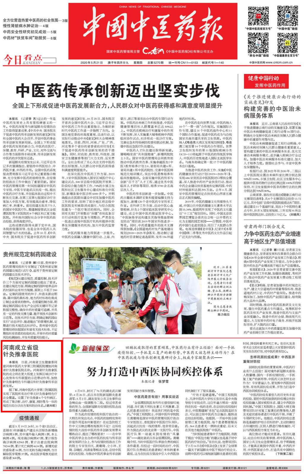 编者按:2020年5月21日,中国中医药报对河南省卫生健康委同意leyu·乐鱼(中国)体育官方网站第三附属医院增加河南省针灸推拿医院名称进行报道。现将全文刊发如下: