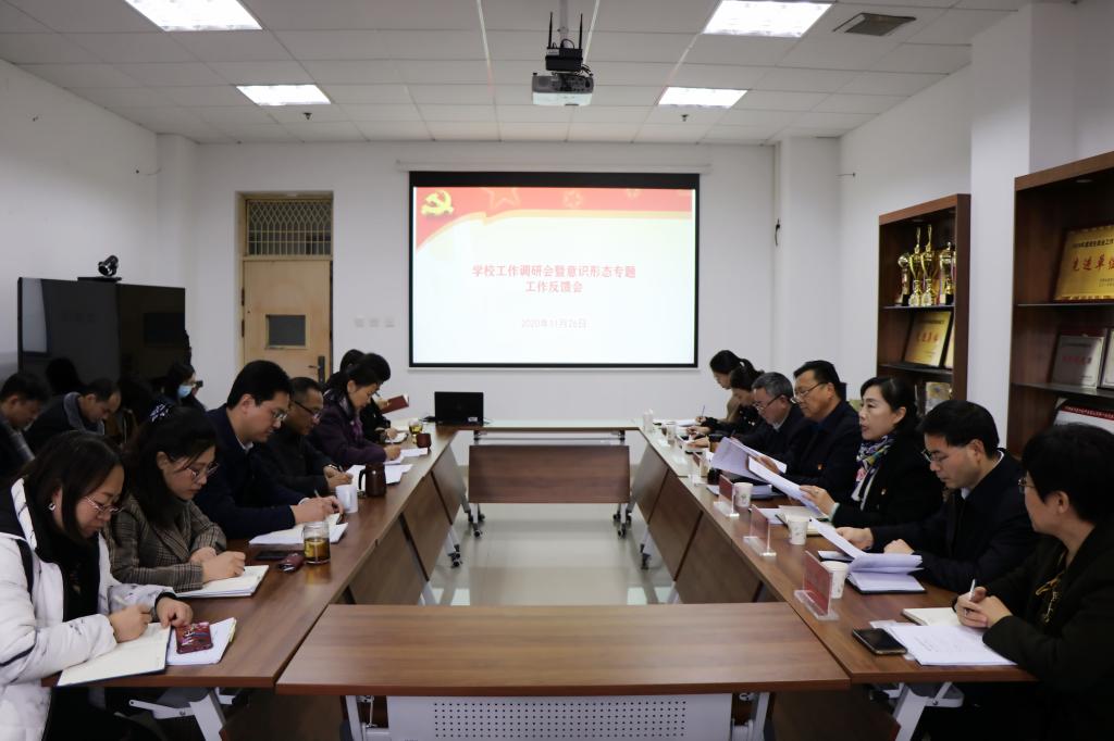 本网讯(文/白海霞 图/杨静静)2020年11月26日上午,校纪委书记、监察专员王少玉带领调研组及校党委意识形态专项巡察第三巡察组成员一行到管理学院进行调研座谈暨意识形态专项巡察反馈。管理学院全体领导班子、教研室主任、党支部书记、学生党员代表参加会议。