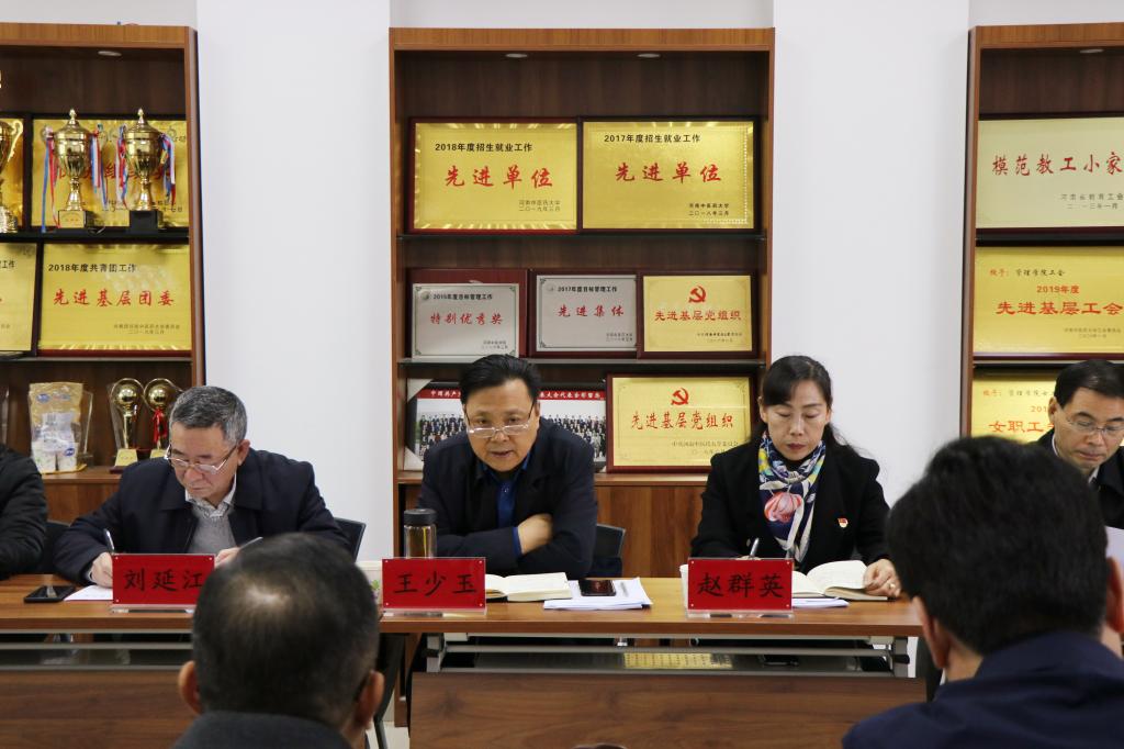 王少玉指出,管理学院的各项工作推进有力,富有成效。他强调,要强化理论武装,学习领会好贯彻落实好习近平总书记关于全面从严治党的重要论述,扛稳政治责任,牢牢抓住立德树人这个根本任务,努力培养合格的社会主义建设者和接班人;要科学谋划“十四五”规划,坚持开门问策,集思广益,着眼长远、把握大势,充分挖掘特色,在建设一流中医药大学维度中谋划学院未来发展定位,科学做好“十四五”规划编制工作;要聚焦难点攻坚创新,进一步对照学校年度各项工作任务清单,集中精力抓重点、抓落实,推动各项工作再上新台阶,为开展好明年工作夯实基础。