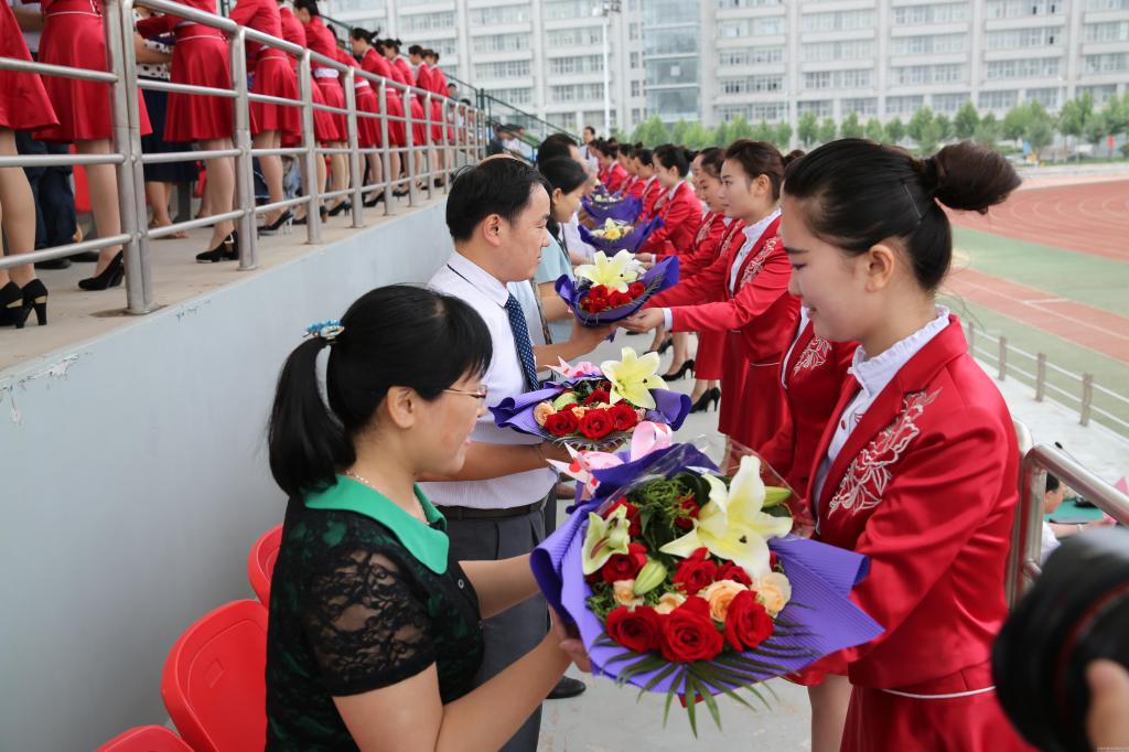 教师代表接受学生的鲜花致谢
