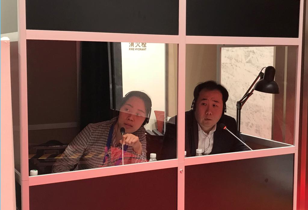 宋晓兰(左一)在2018年COA会场担任同声传译员