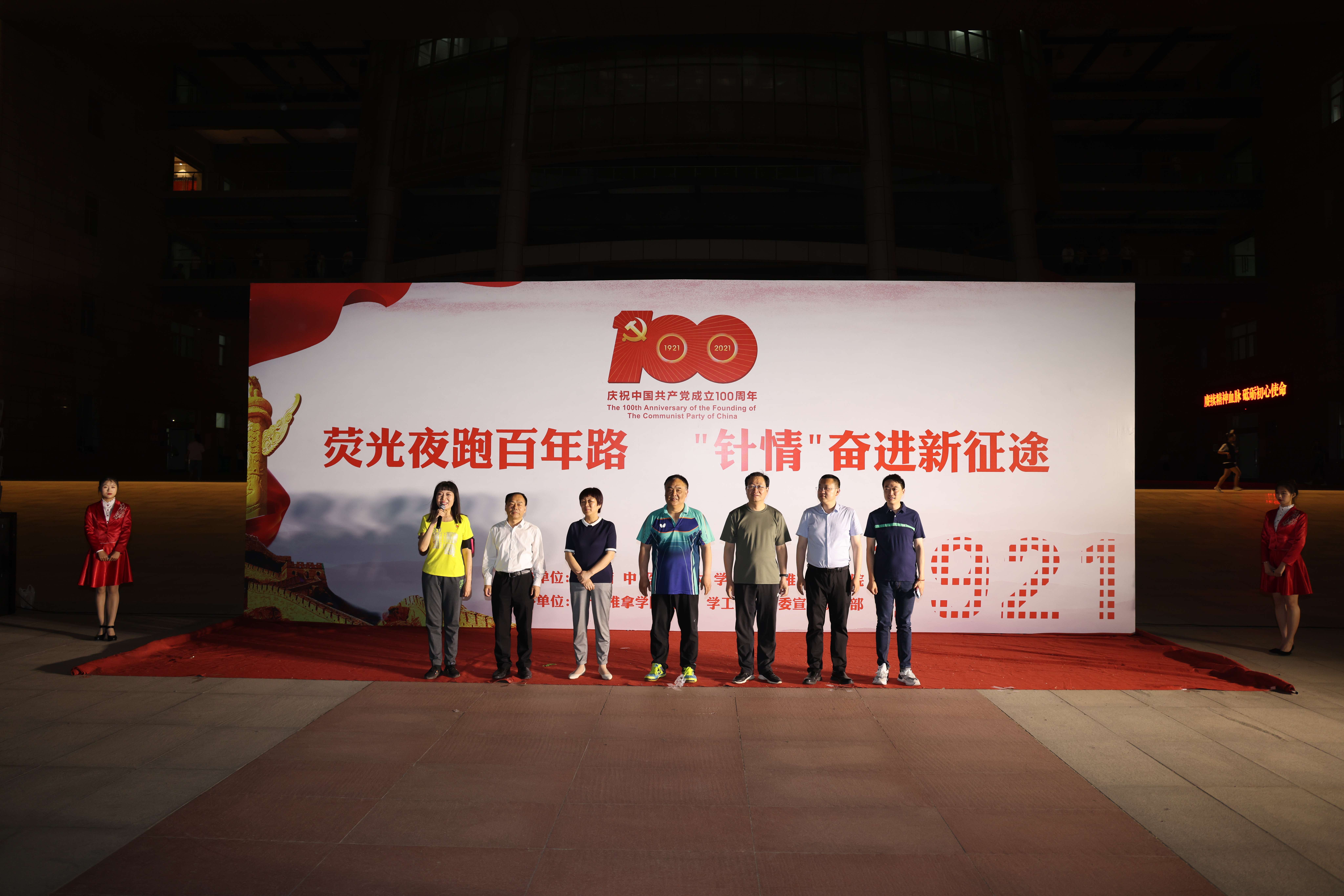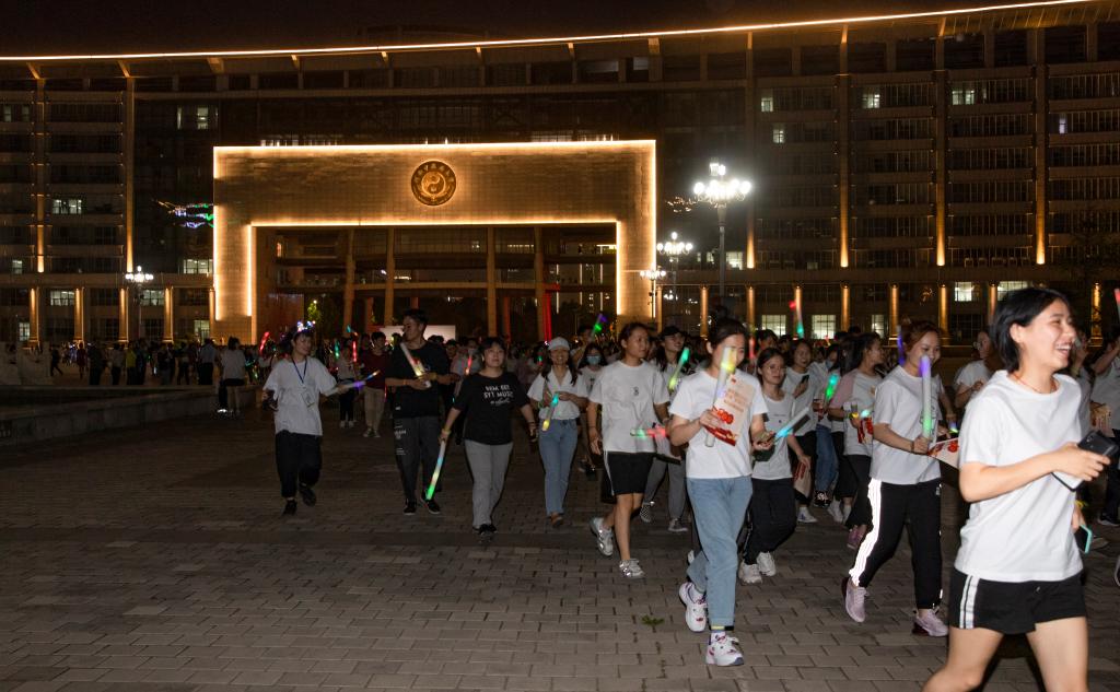 本网讯(文/葛昕 图/秦东仁)在中国共产党建党100周年来临之际,为创新形式扎实开展党史学习教育,激发广大青年学子学习党史的热情,将党史学习教育和体育锻炼相结合,真正做到“五育并举”,2021年5月26日晚,由针灸推拿学院举办的“荧光夜跑百年路,‘针情’奋进新征程”荧光夜跑活动在leyu·乐鱼(中国)体育官方网站龙子湖校区举行。校党委副书记、工会主席张小平,党委宣传部、学工部、校团委、针灸推拿学院负责同志及1800余名针灸推拿学院学生参加夜跑活动。启动仪式由针灸推拿学院党委副书记焦钧主持。