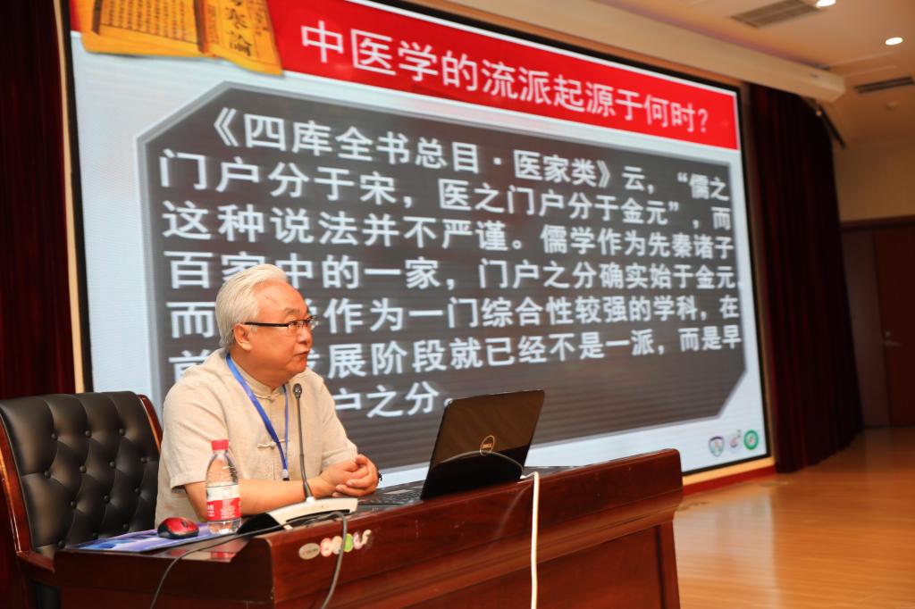 在2017年6月18日上午,在中华中医药学会仲景学术传承与创新联盟成立后设立的仲景学术传承与创新论坛上,北京中医药大学王庆国教授以“秦汉之际的医学传承与伤寒杂病论奠基”为题,梳理了仲景学术传承脉络。王教授从《黄帝内经》、《难经》等文献研究秦汉之际医学流派的传承发展、相互交融的情况,通过梳理秦汉之际医学流派的的概况,了解本时期医学流派间的割据情况、传承方式以及之后学派间的交流情况,探讨这种交流对《伤寒杂病论》成书的影响。秦汉时期医学流派可分为医经、经方、房中、神仙4派,经历了固守家学的学术壁垒期,逐渐进步为各家积极相互学习交流的发展时期,这种交流为总结先贤学术经验及中医药的进一步发展提供了条件,而正是这种交流发展催生了《伤寒杂病论》。王教授用丰富、详实的史料,证实正是秦汉之际医学流派间经历了从保守到交融的过程,才促成了《伤寒杂病论》成书的基础。