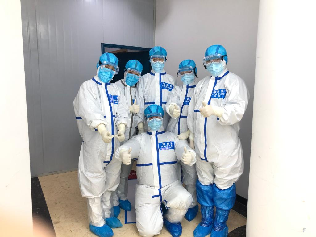 2月17日0:15分,医疗队负责感控的温世宝副主任连续工作21个多小时后,终于可以休息了。