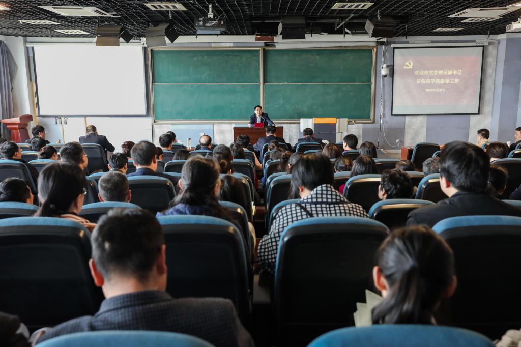 2018年3月27日,校党委书记别荣海到药学院作专题辅导报告,药学院党政领导及全体教职工参加会议。会议由药学院党委书记陈随清主持。
