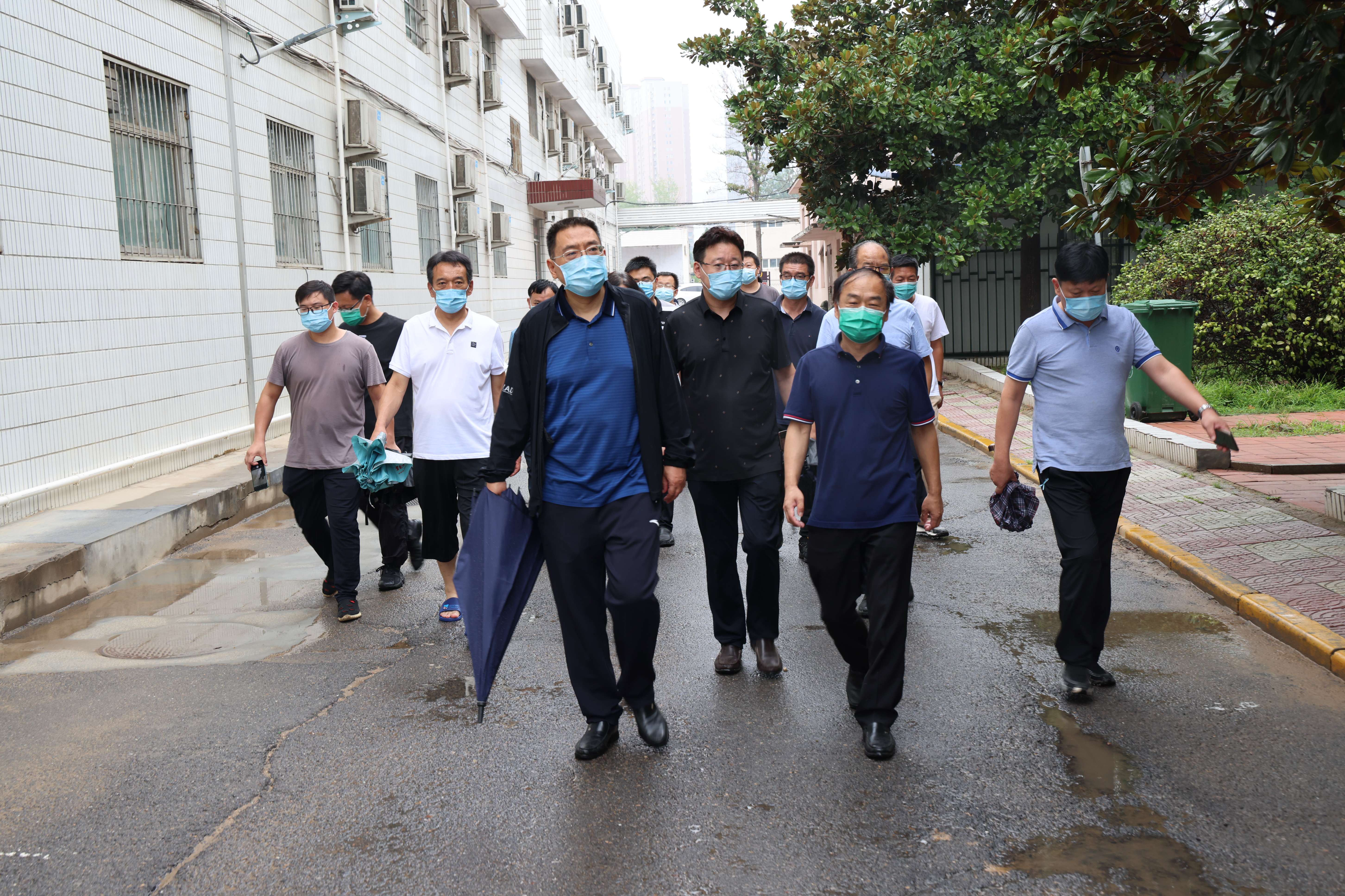 本网讯(文/李冕 图/潘向昆)根据气象部门预报,2021年8月21日夜间到22日,郑州市将出现大范围暴雨天气。为进一步筑牢三附院防汛抢险的坚固防线,8月21日至22日,校党委书记别荣海,校党委副书记、工会主席张小平,校党委委员、副校长苗明三先后到三附院对防汛工作进行检查指导,三附院党委书记周运峰、工会主席蔡庆春等参加。