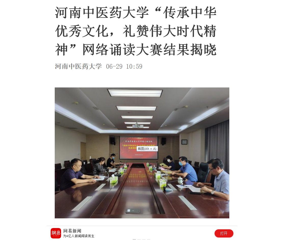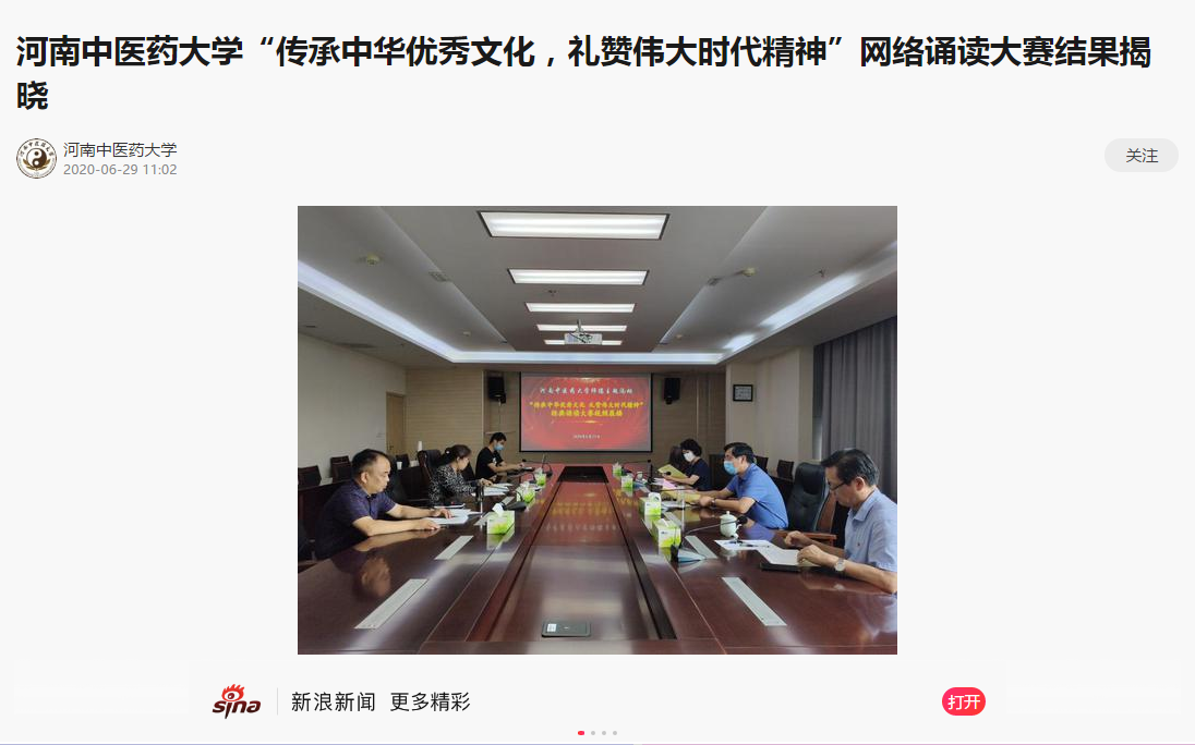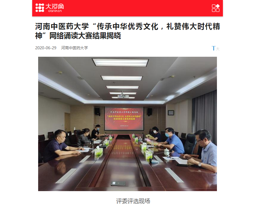 2020年6月29日,大河网、新浪新闻、网易新闻对leyu·乐鱼(中国)体育官方网站“传承中华优秀文化,礼赞伟大时代精神”网络诵读大赛结果揭晓进行报道。