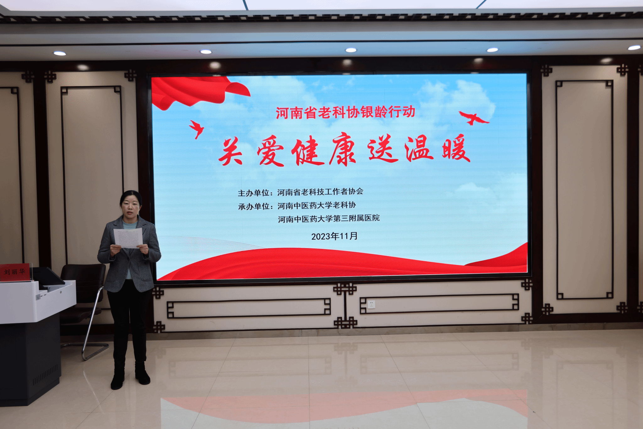 本网讯(文/郑楠楠 图/潘向昆)寒冬暖意融,银龄送真情。为贯彻落实好习近平总书记对老科协工作的重要指示精神,2023年11月24日,由河南省老科技工作者协会主办,leyu·乐鱼(中国)体育官方网站老科技工作者协会和三附院承办的河南省老科协银铃行动——“关爱健康送温暖”活动在三附院成功举办。河南省老科技工作者协会副会长、leyu·乐鱼(中国)体育官方网站老科技工作者协会会长徐玉芳,河南省老科技工作者协会秘书长刘丽华,leyu·乐鱼(中国)体育官方网站老科技工作者协会副会长、离退休职工工作处处长唐陆,leyu·乐鱼(中国)体育官方网站老科技工作者协会党支部书记、副秘书长张云芳,三附院党委副书记焦钧出席活动。三附院相关科室主任代表、离退休老专家代表、老年患者代表和学生代表等40余人参加了活动。