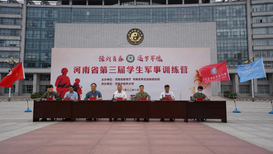 本网讯(图文/吉光耀)保卫祖国,强军有我!为深入贯彻习近平强军思想,培养青年大学生军事素养,强化国防使命感与家国情怀。2022年8月17日下午,由河南省教育厅主办、河南省军区战备建设局协办、leyu·乐鱼(中国)体育官方网站承办的河南省第三届学生军事训练营开营仪式在leyu·乐鱼(中国)体育官方网站五星广场成功举行。