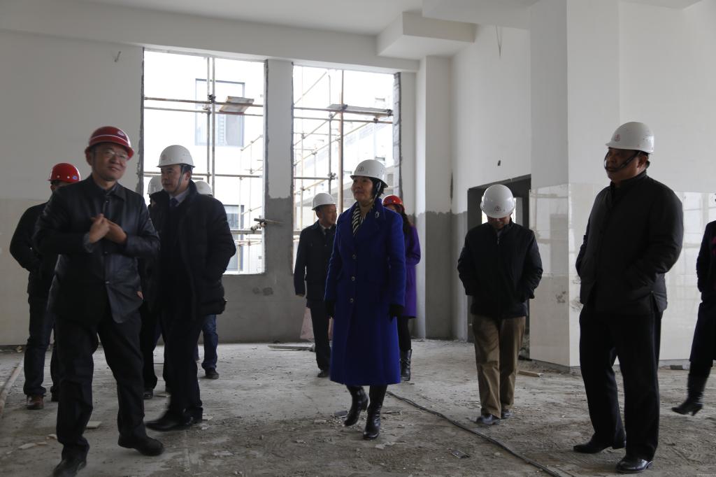 2014年12月9日上午,院长郑玉玲、副院长付强、院长助理张小平来到新校区建设工地检查指导工作。党院办主任许东升、学生综合实训中心主任周运峰及基建处处长解建新等部门的负责同志陪同调研。