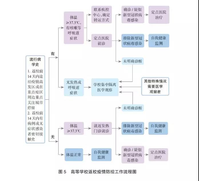 《指南》要求各地各高校在确保安全的条件下,确定返校日程,精准安排教职员工和学生分期分批(建议分日分时段)有序返校。有条件的高校可按照相关要求自行设置集中隔离医学观察区,不具备条件的须联系当地政府协助解决,无法设置集中隔离医学观察区的高校应考虑暂缓开学。