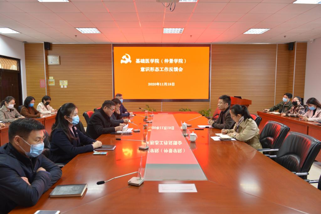 本网讯(文/杨念 刘杰 图/张慧鹏 杨晓 王新灵 王献竹)按照学校党委统一部署,2020年11月18日,学校党委第二巡察组分别对基础医学院、马克思主义学院、药学院和国际教育学院等四个被巡察学院反馈巡察情况。校党委第二巡察组组长、纪委副书记解建新,副组长、巡察办副主任刘杰出席反馈会议。被巡察学院党组织班子成员、科级干部、各科室主任和部分师生代表参加反馈会议。