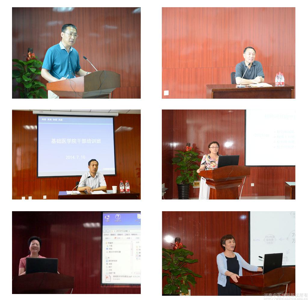 为促进基础医学院各岗位人员尽快熟悉岗位职责,了解学校及学院各项工作的运行机制,提高工作效率,提升管理水平和服务质量,基础医学院于2014年7月10日-11日在BS820举办由党政领导班子成员和各学科、教研室、实验中心(实验室)主任与秘书、各支部书记及党政办、教研办、学工办工作人员等70余人参加的管理干部培训班。培训班由基础医学院院长詹向红主持,特邀学校李建生副院长、刘文第副院长,组织部部长、人事处处长徐江雁、科技处副处长蒋时红、省一级学科重点学科基础医学学科带头人朱艳琴等作专题讲座。