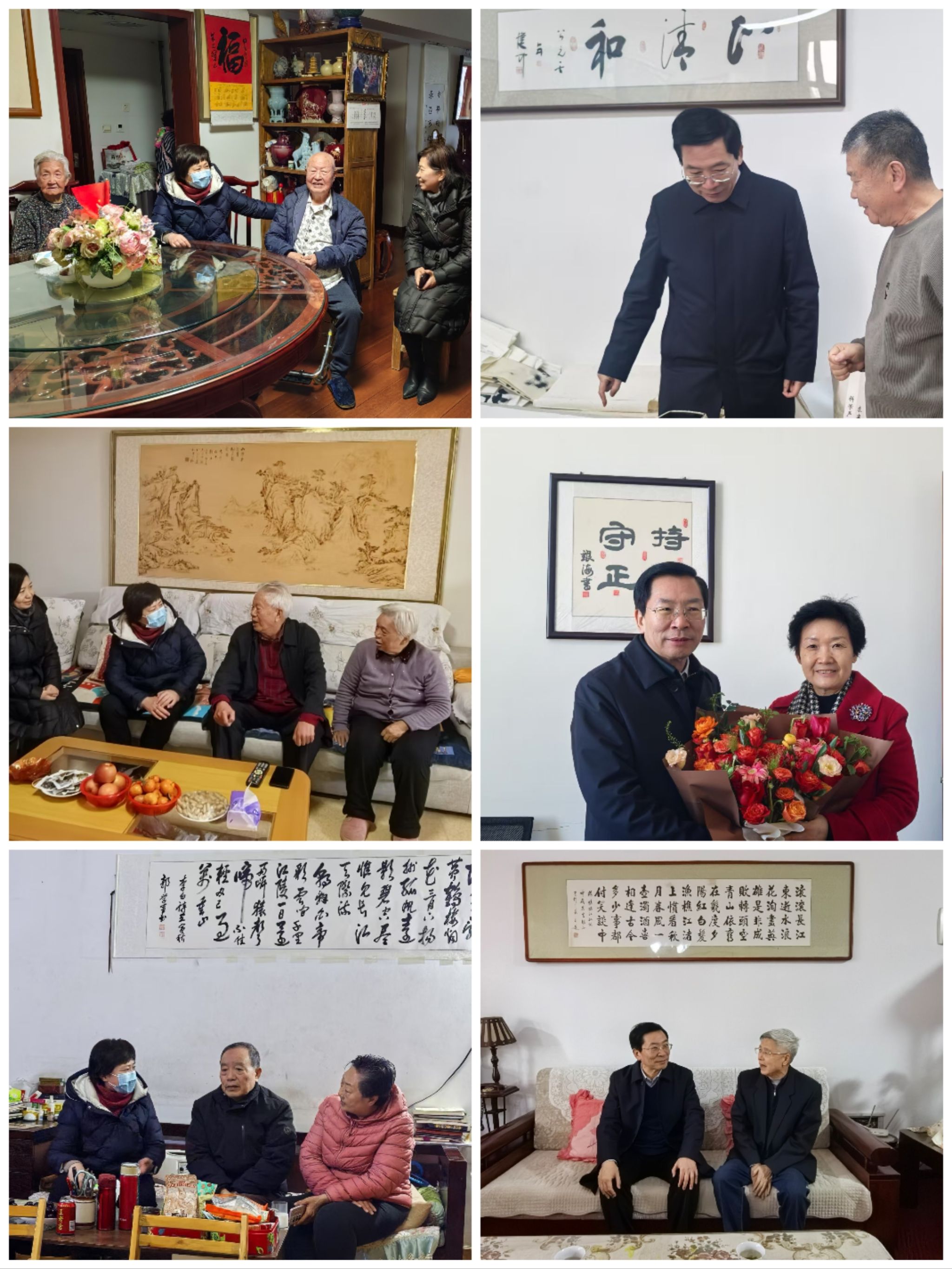 李小芳一行走进了国医大师张磊家中,关切询问他的身体和生活情况,感谢张磊等老一辈中医人为学校发展和中医药事业所作出的卓越贡献,对他已近百岁仍坚守在医疗一线表达崇高的敬意,向他致以新春的问候,祝愿他健康长寿,幸福安康。随后又分别慰问了部分老领导、老专家和离休干部遗属,悉心询问他们的身体和生活情况,聆听他们对学校工作的意见建议。李小芳代表学校,向老同志们致以新春的问候和美好的祝愿,对老同志们为学校发展做出的贡献表达诚挚敬意和衷心感谢。她指出,老同志是学校的宝贵财富,是学校发展建设的奠基者、见证者、参与者。学校党委高度重视离退休工作,用心、用情把为老服务做细、做实,希望广大离退休老同志继续发光发热,为学校“双一流”建设增光添采。