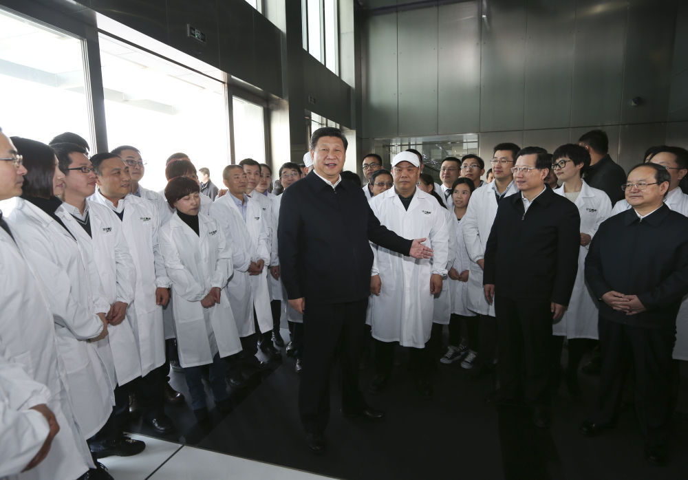 2016年2月3日,习近平在江西江中集团江中药谷制造基地考察时同企业科技人员在一起。