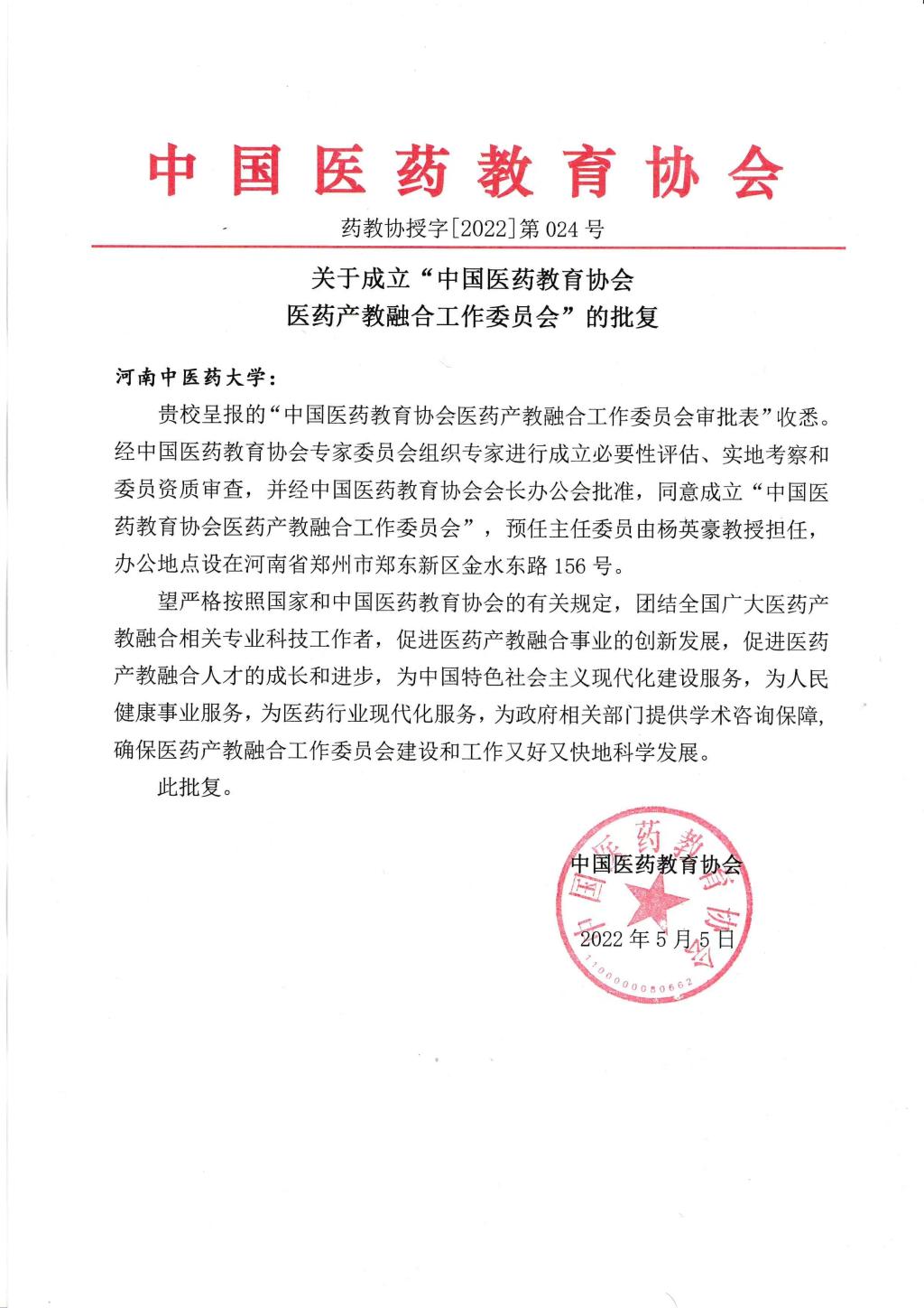 关于成立“中国医药教育协会医药产教融合工作委员会”的批复