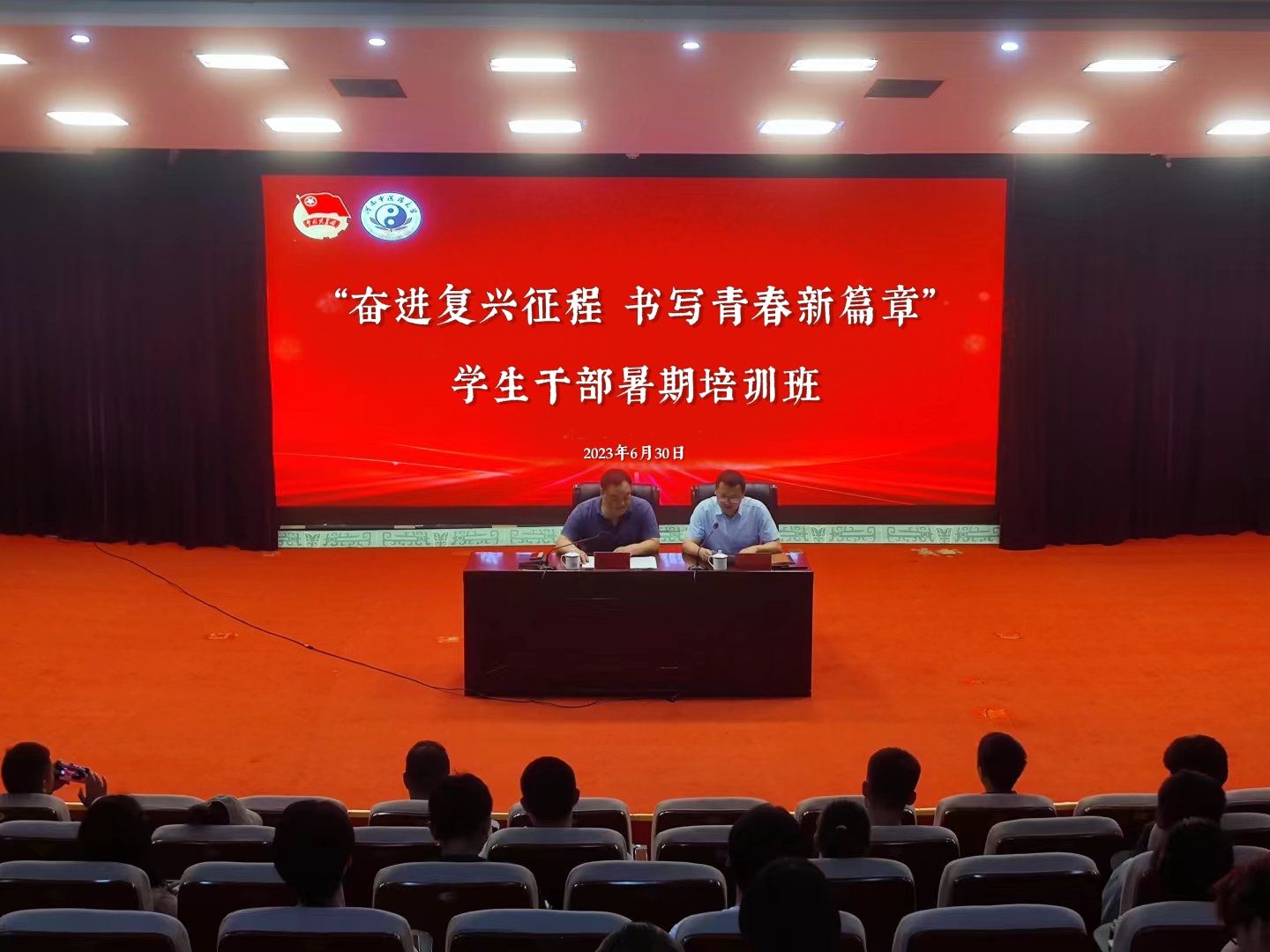 本网讯(文/图 郭薇)2023年6月30日上午,leyu·乐鱼(中国)体育官方网站2023年学生干部暑期培训班在图书馆第一报告厅举行。校党委副书记、工会主席张小平为培训班学员作题为《加快建设教育强国》的首场报告。校团委全体成员、二级学院团委书记、“筑梦英才”实践班、青苗班学员、校院学生组织骨干等共同聆听了报告。报告会由校团委书记高磊主持。