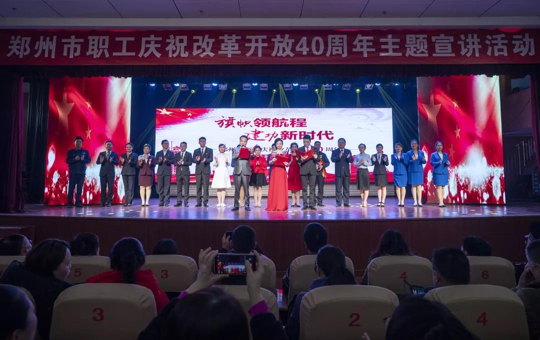本网讯(文/杨琳 图/李瑞)2018年12月20日下午,一场以“旗帜领航城 建功新时代”为主题的郑州市职工庆祝改革开放40周年主题宣讲活动在市总工会礼堂举行。来自各条战线的10位职工代表以亲身经历和切身感受,热情讴歌了改革开放40年来我市各个行业所取得的瞩目成绩,进一步激发了全市职工“改革开放再出发”的壮志豪情。