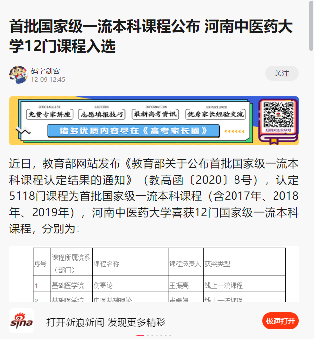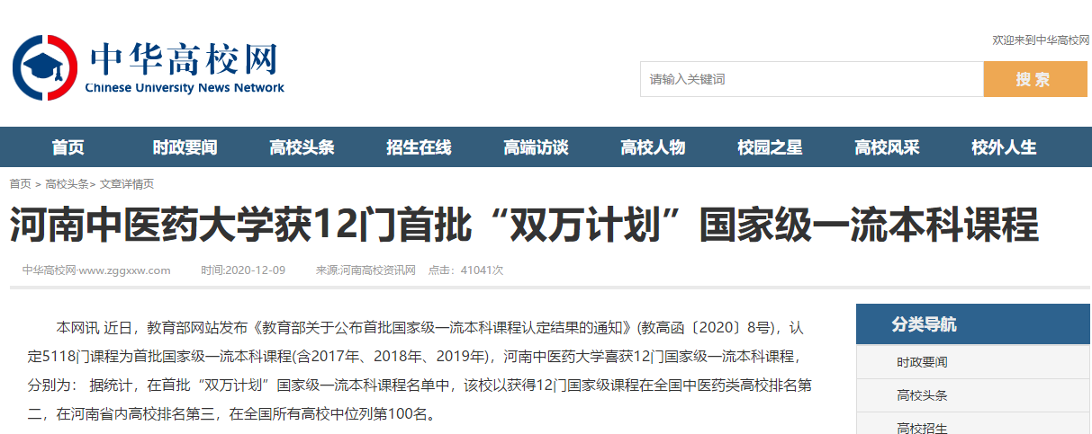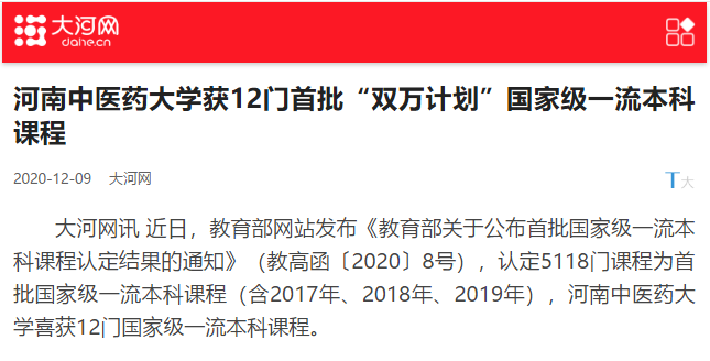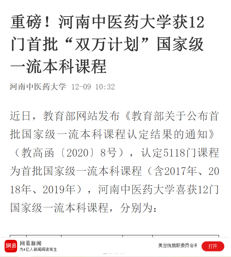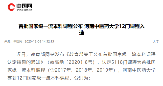 编者按:2020年12月9日,中国网、中华高校网、大河网、河南高校资讯网、网易新闻、新浪新闻等媒体对leyu·乐鱼(中国)体育官方网站12门课程入选首批国家级一流本科课程进行报道。