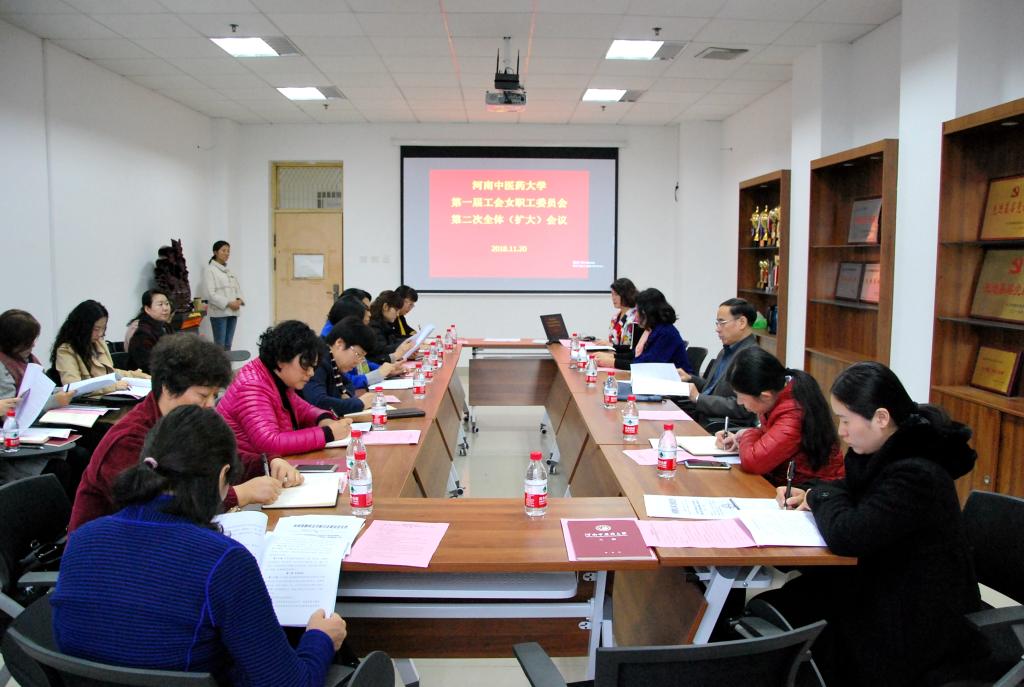 2018年11月20日下午,leyu·乐鱼(中国)体育官方网站第一届工会女职工委员会第二次全体(扩大)会议在教学实验楼A542召开。校党委委员、工会主席张加民,学校工会女职工委员会委员,基层工会女工主任、委员和校工会相关工作人员参加了会议。会议由文体福利部主任吴晓萍主持。