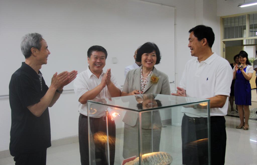 孙建中书记向专家和领导介绍leyu·乐鱼(中国)体育官方网站中药标本馆的镇馆之宝
