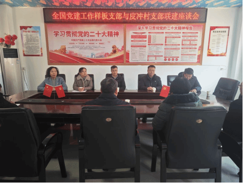 本网讯(文/王北溟 图/何敬川)为学习贯彻习近平总书记关于党的建设的重要思想和党建引领乡村治理的重要论述,深入推进学习贯彻习近平新时代中国特色社会主义思想主题教育,助力“五星”支部创建,leyu·乐鱼(中国)体育官方网站驻皮冲村工作队邀请全国党建工作样板支部“马克思主义中国化研究党支部”赴皮冲村开展支部联建活动。马克思主义学院院长张会萍、副院长郭伦、马克思主义中国化研究党支部书记刘金鸽,固始县武庙集镇党委书记饶培华、皮冲村两委成员参加活动。