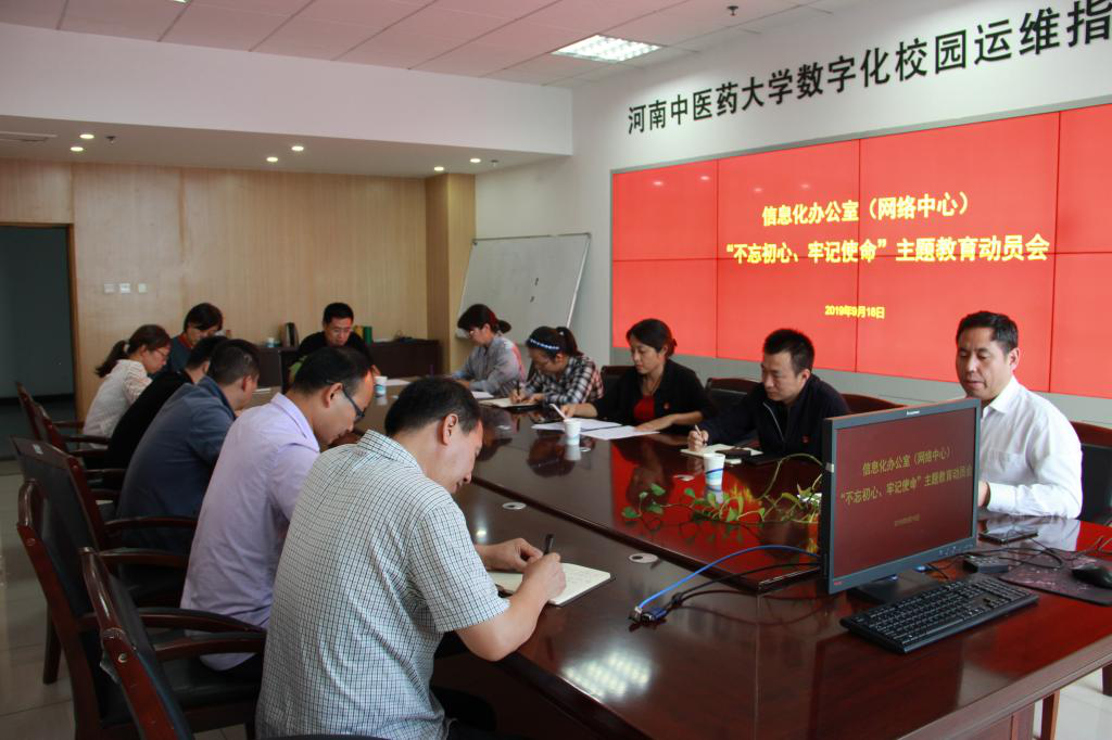 2019年9月19日下午,信息化办公室(网络中心)在A809会议室召开了“不忘初心、牢记使命”主题教育动员会。学校主题教育第四指导组组长仲利娟,成员刘杰、王谦、李丹,信息化办公室全体成员参加动员会,会议由信息化办公室(网络中心)直属党支部书记赵振营主持。