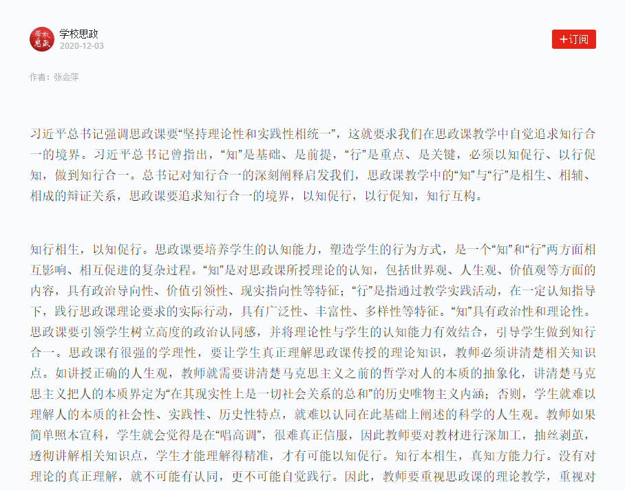 思政教育要追求知行合一的境界