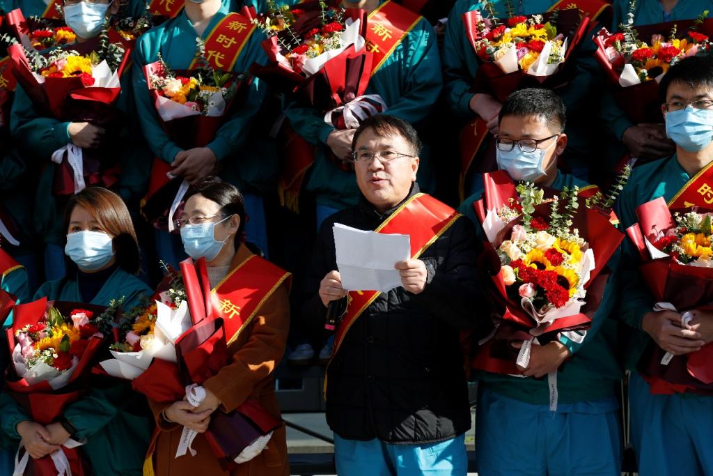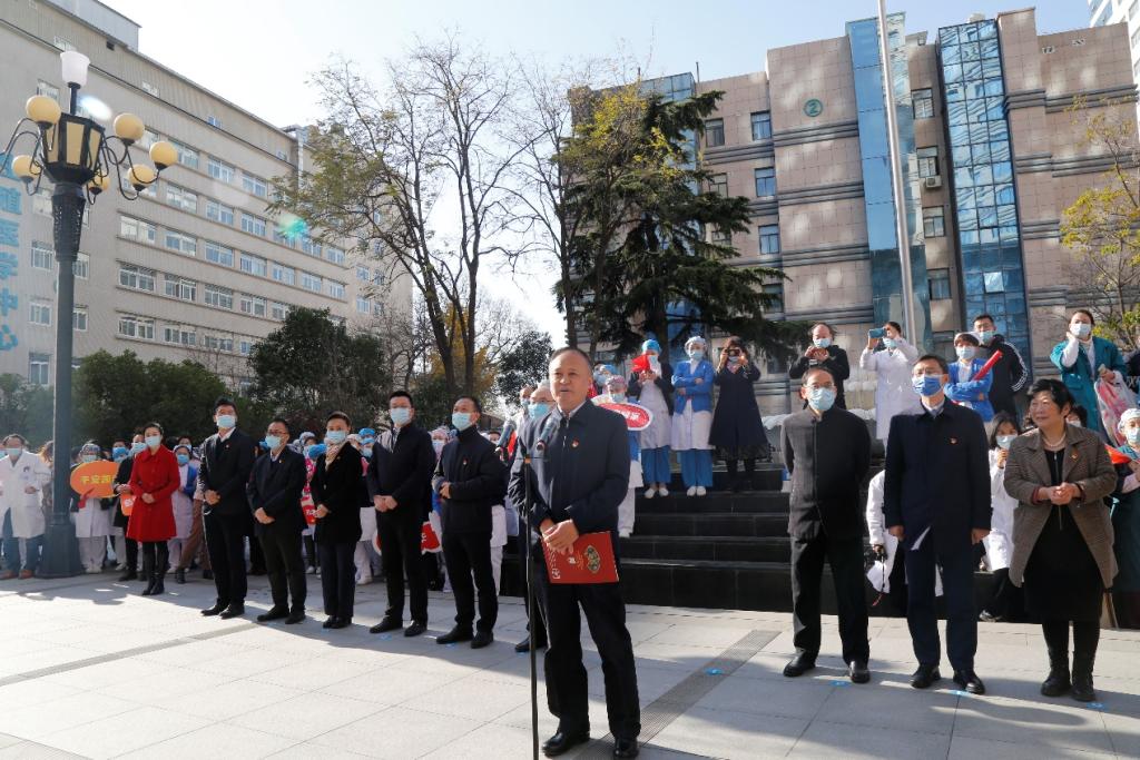 张若石代表卫健委对平安归来的同志们表示亲切的问候。对队员们在疫情救治过程中,充分发挥中医药特色和自身专业优势,充分利用院内制剂等优质资源,确保“一人一案”“一人一方”,取得的良好疗效表示肯定。赞扬队员们不畏艰险、勇往直前、顽强拼搏、甘于奉献,充分展现了河南省卫生系统的良好形象。希望大家认真总结抗疫经验、继续发扬成绩,为传承创新发展中医药事业和健康河南建设、健康中原建设作出新的更大贡献。