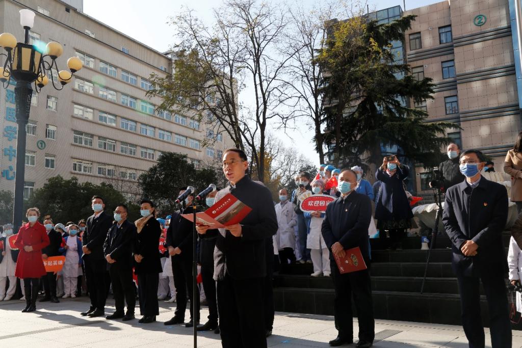 一附院党委为李素云教授和医疗队员们举办了热烈而隆重的欢迎仪式。河南省卫健委副主任张若石,leyu·乐鱼(中国)体育官方网站党委委员、副校长张加民,河南省卫生健康委员会中医处副处长段瑞昌等领导莅临仪式现场。医院领导,各相关职能部门及临床科室负责人、护士长代表、医疗队家属代表等参加了欢迎仪式。仪式由一附院党委书记翟剑波主持。