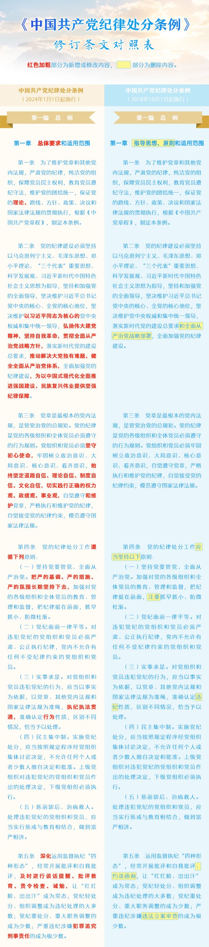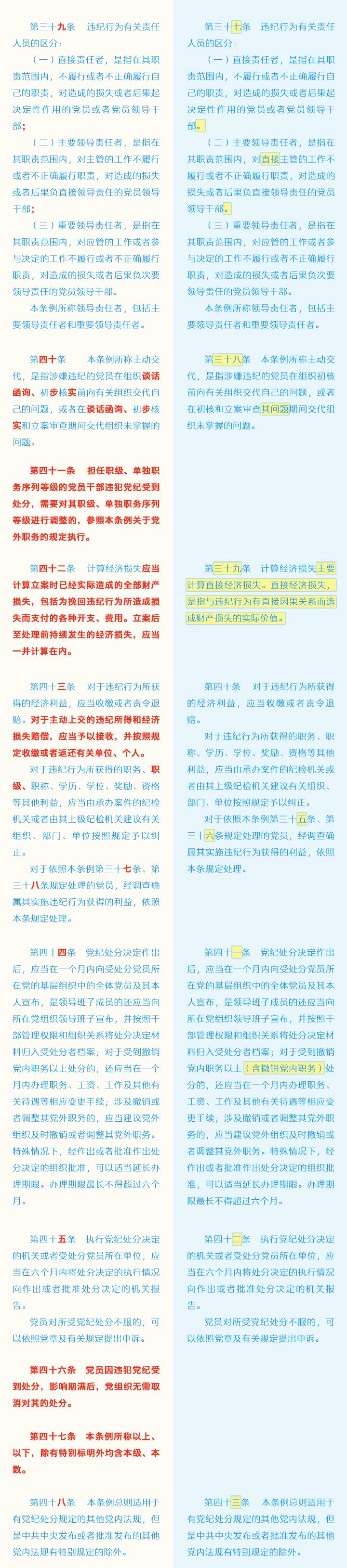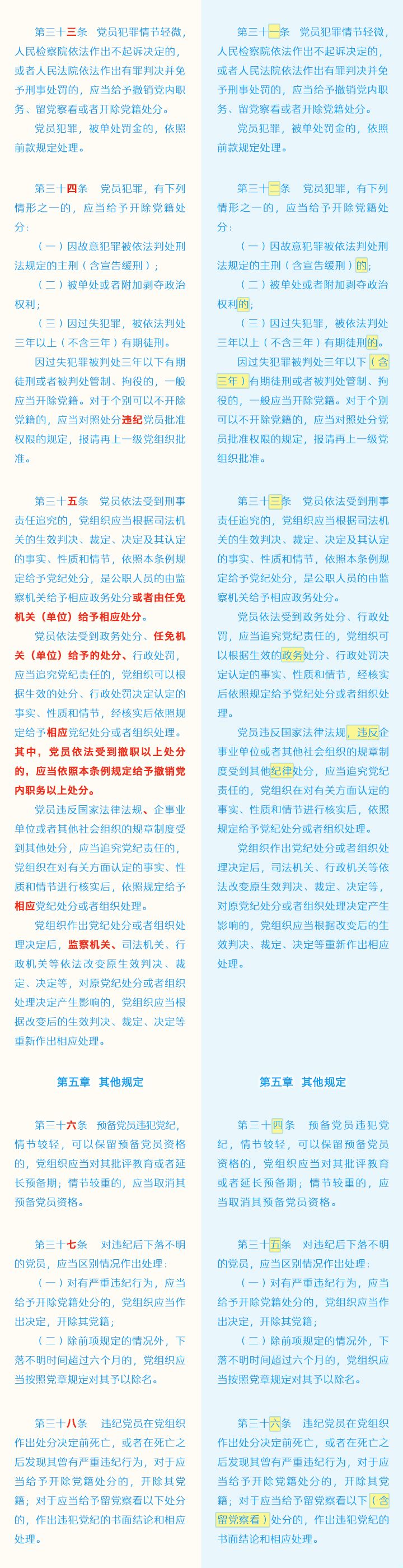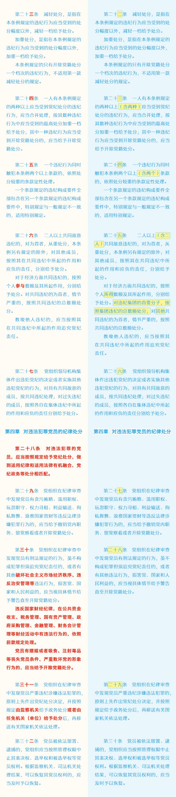 党纪学习教育专题丨《中国共产党纪律处分条例》修订条文对照表