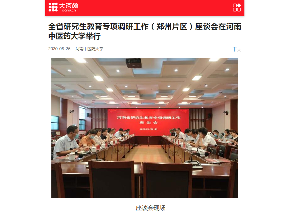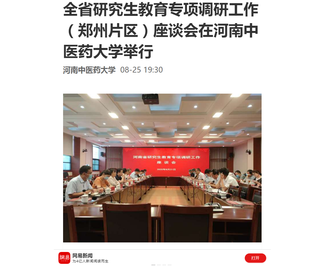 2020年8月25日,大河网、网易新闻对全省研究生教育专项调研工作(郑州片区)座谈会在leyu·乐鱼(中国)体育官方网站举行进行报道。