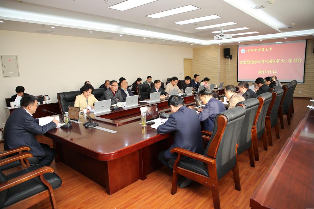 为贯彻落实中央和省委关于学习宣传党的十九大精神的重大部署,推动leyu·乐鱼(中国)体育官方网站学习宣传贯彻落实工作的深入开展,2017年11月14日下午,校党委理论学习中心组召开专题学习会,集中学习党的十九大精神。在郑校党委中心学习组成员参加会议,有关部门和单位的负责人列席会议。会议由学校党委理论学习中心组组长、党委书记别荣海主持。