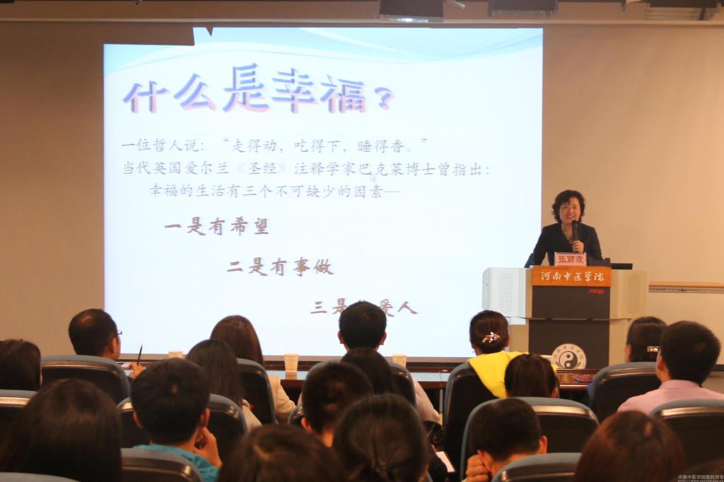 2014年10月21日下午5:30,leyu·乐鱼(中国)体育官方网站党委副书记张丽霞教授受邀在教学楼A634录播室为学生干部作了题为《运用积极心理学,做一名优秀学生干部》的心理专题讲座。校团委全体老师,首届“筑梦英才”实践班的30名学员及全校基层团支部书记共同参加了讲座。讲座由团委书记郭婧主持。