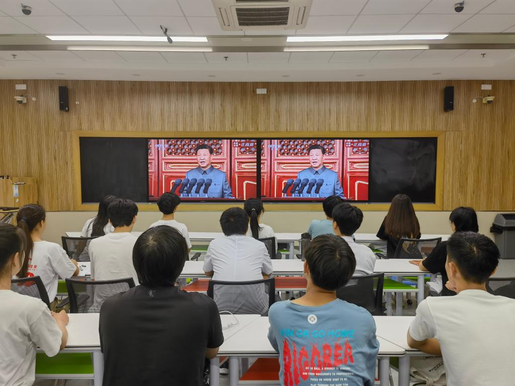 学生干部代表集中观看庆祝中国共产党成立一百周年大会,聆听中共中央总书记、国家主席、中央军委主席习近平在大会上发表的重要讲话。大会结束后,校团委第一时间组织学习交流座谈会。学生干部深入学习、讨论交流,畅谈学习重要讲话精神心得体会。大家一致表示,总书记的讲话高屋建瓴、内涵丰富,是一篇马克思主义中国化的光辉文献,是马克思主义中国化的最新成果。聆听总书记的讲话既感到无比自豪,更深感重任在肩,要牢记总书记嘱托,砥砺初心使命,成为实现中华民族伟大复兴的先锋力量,不负韶华,不负党和人民的殷切期望!
