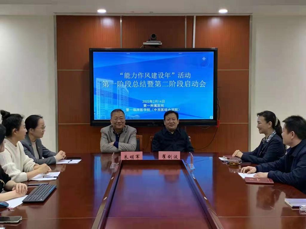 本网讯(文/范璐璐 杨梦丹 图/李蔚 李新宇)为深入推进“能力作风建设年”活动,2022年2月16日,第一临床医学院(中西医结合学院)在1422会议室召开了“能力作风建设年”活动推进会暨新学期学生工作会。院党委书记翟剑波,党委副书记、院长朱明军,党委副书记张婉红,副院长王永霞出席会议,一临床全体学生辅导员参会。会议由张婉红主持。