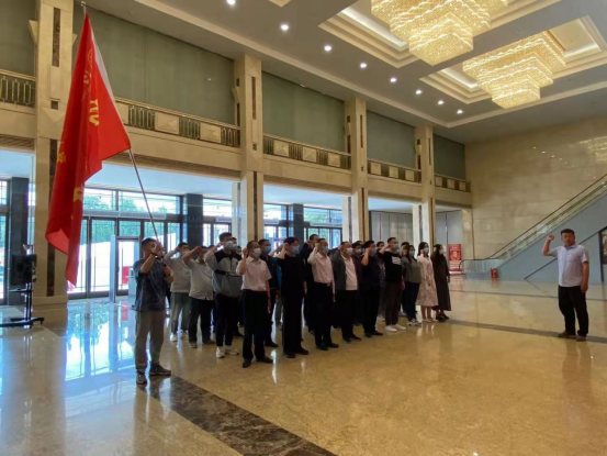 2021年5月10日下午,后勤服务中心党总支组织全体党员干部赴河南省人民大会堂开展了红色观影活动。全体党员干部在人民大会堂一楼前大厅宣誓墙前,庄严地举起右手,重温了入党誓词,重忆了入党初心。随后,在讲解员的带领下集体参观了百年党史图片展。百年党史图片展览以中国共产党的百年发展历程为主线,以党的重大事件为线索,从站起来、富起来、强起来三个时期,全景式地回顾了党的百年伟大历程和辉煌成就。通过参展,全体党员干部对党的百年奋斗历史有了更加直观的认识和了解,也深深感慨于我党百年奋斗路上的筚路蓝缕。